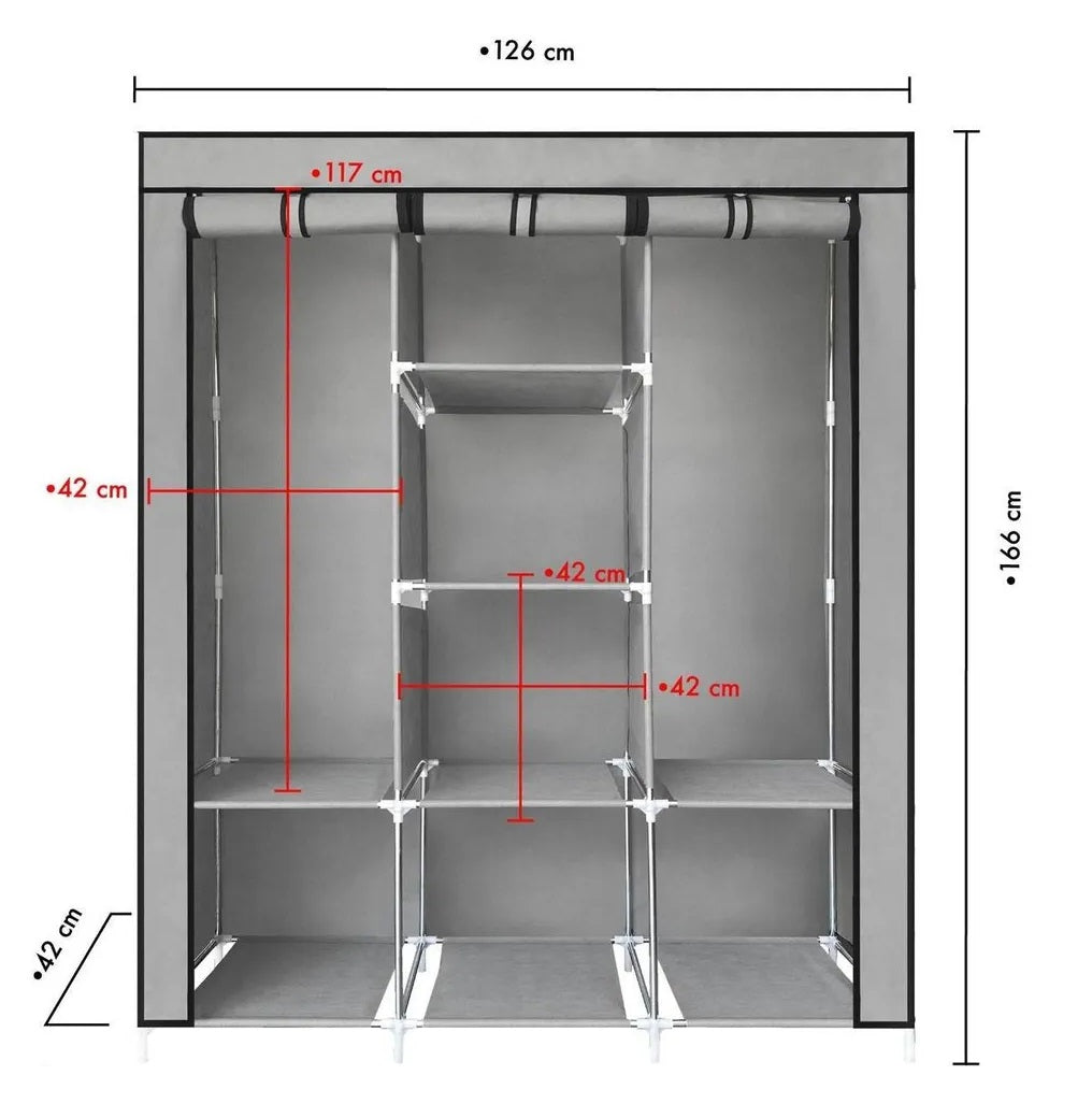 - Estantes internos: Niveles ajustables para guardar ropa doblada, cajas y accesorios