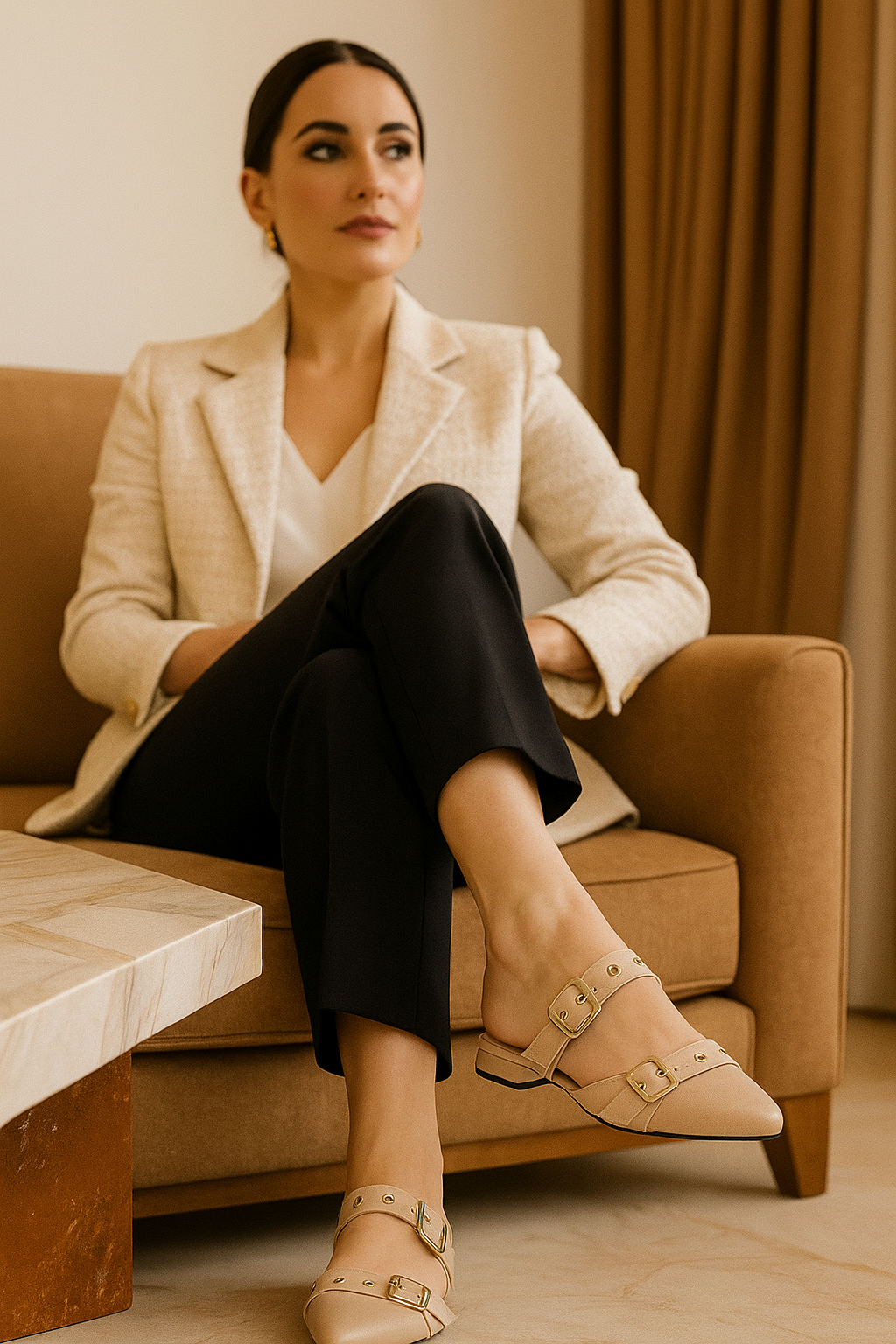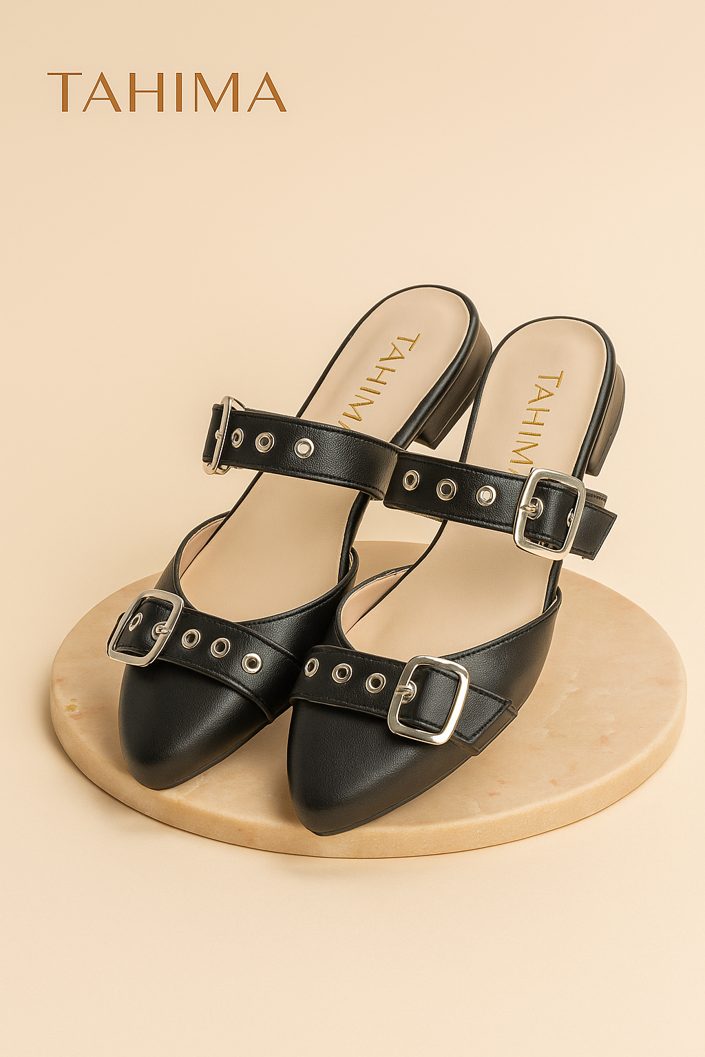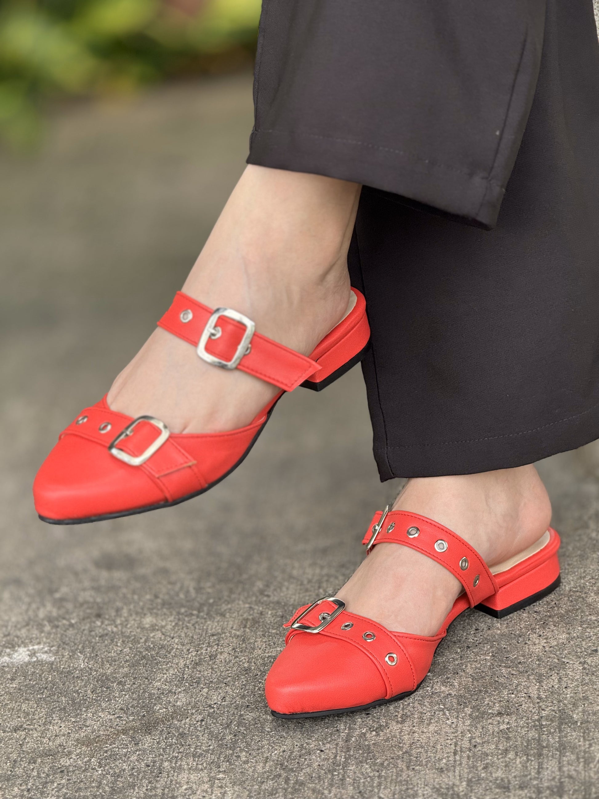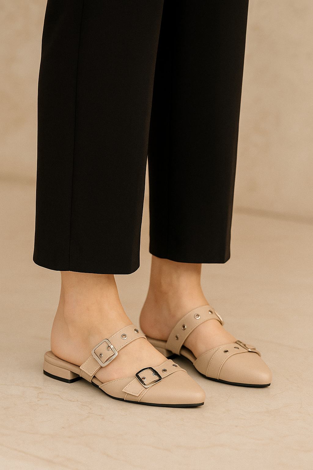 - Estilo: Destalonado (mule) con punta afilada