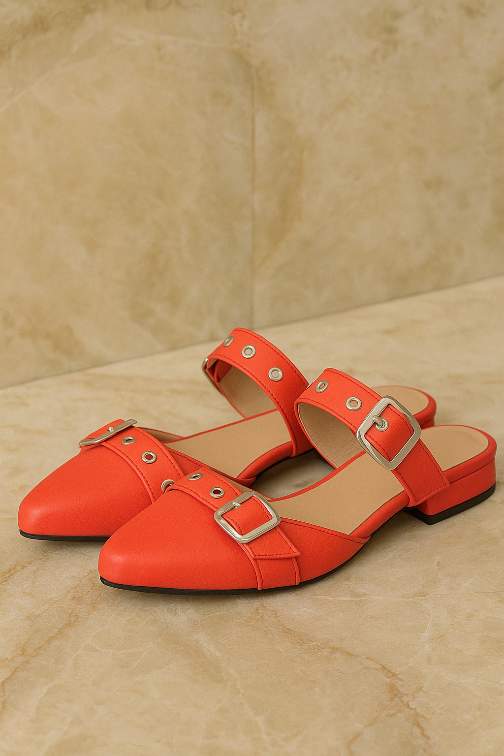 La Baleta Plana Destalonada REF TM01 es la elección perfecta para quienes buscan practicidad sin renunciar al estilo. Con su punta afilada y tono coral/naranja vibrante, este zapato transforma cualquier look básico en una declaración de moda.